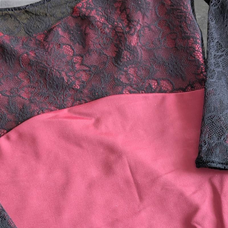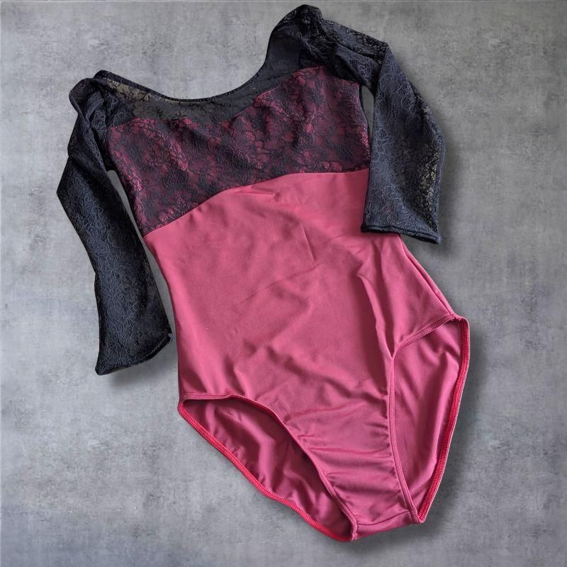 無地のレオタードにブラックのメッシュですっきり細身にみせてくれるデザイン
