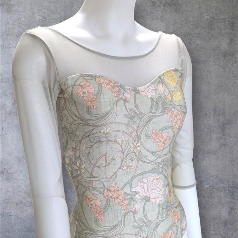 薄いグリーン地に円をえがいたボタニカル柄【Art Nouveau】は優しい雰囲気が特徴です。