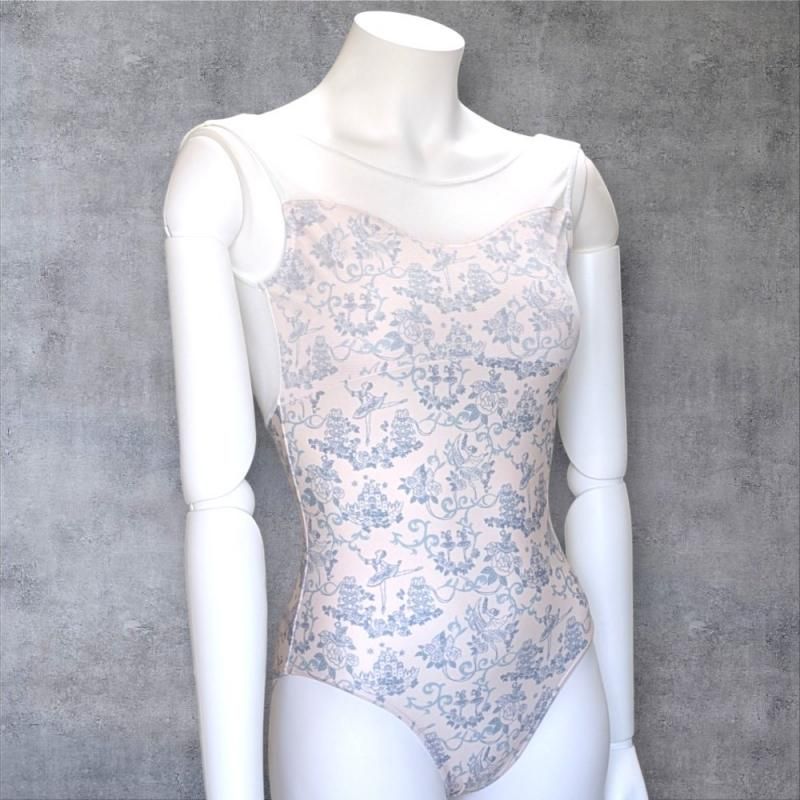 形は重なったメッシュ部分とテキスタイルとのグラデーションが楽しめるオーバービスチェタイプ