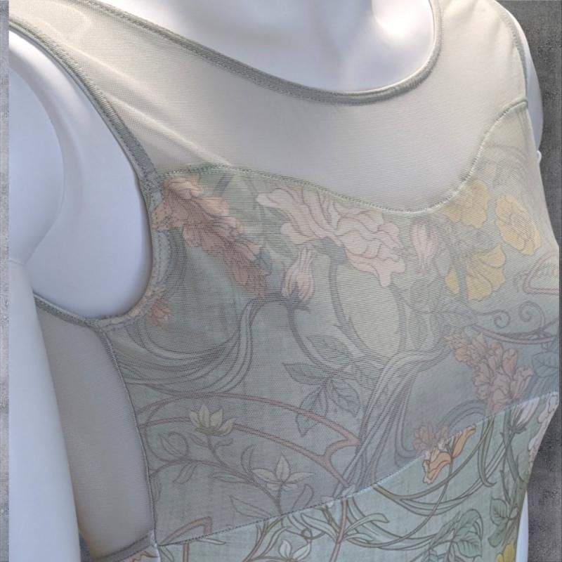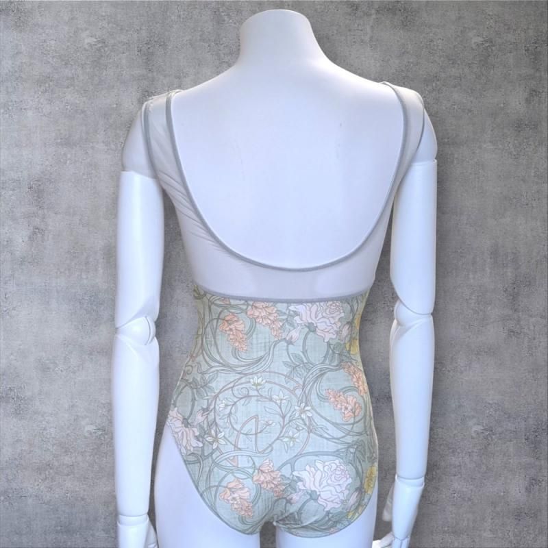 形は重なったメッシュ部分とテキスタイルとのグラデーションが楽しめるオーバービスチェタイプ