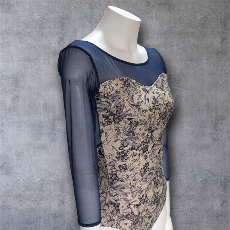 上品なベージュにネイビーの線画、ネイビーのメッシュと合わせることで統一感のあるお洒落な印象に。